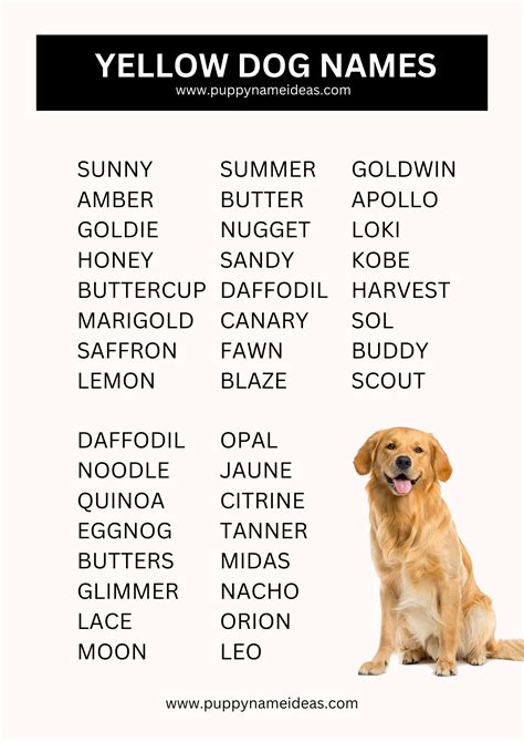 Yellow Dog Names . Looking for the perfect name for your yellow dog? Find the perfect name for your yellow dog with our ultimate guide to yellow dog names, featuring a wide range of original ideas.